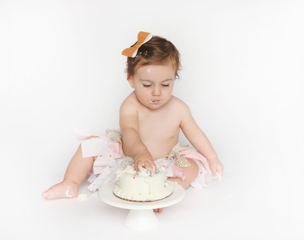 Milestone sessions can take place anytime between two months and a year old: from first smiles, tummy time, sitting up, standing or dancing, to first birthday cake smashes.